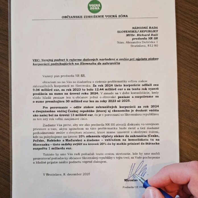 Pre porovnanie – odliv ziskov zahrani?ných korporácií za rok 2024 v dvojnásobne vä?šej ?eskej republike (ktorej aj ekonomika je dvakrát vä?šia ako naša) bol na úrovni 13 miliárd eur, ?o je v porovnaní so Slovenskou republikou za ten istý rok ve?mi zaujímavé ?íslo.