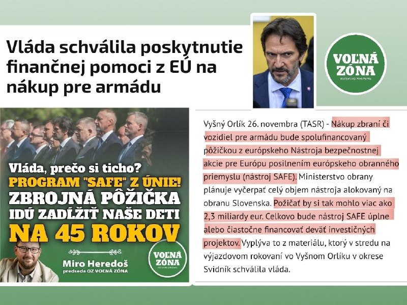 Priatelia a spoluob?ania, cez leto (presne 31. augusta 2025) sme informovali z nášho združenia, že vláda za našim chrbtom a bez nášho súhlasu vstúpila do zbrojného/úverového programu EU, ktorého názov je SAFE (Security Action for Europe).