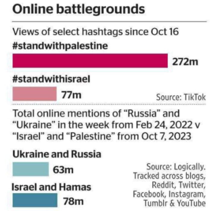 HomeVojenské spravodajstvoPALESTINA / IZRAEL, „The Times“ Od 16. 10 mal propalestínsky hashtag... Vojenské spravodajstvo PALESTINA / IZRAEL, „The Times“ Od 16. 10 mal propalestínsky hashtag 272 miliónov pozretí, a proizraelský – 77 miliónov.Od 24. februára … By Miroslav Kamenský 5. novembra 2023 0 8 Zdieľať FacebookTwitterPinterestWhatsApp PALESTINA / IZRAEL, „The Times“ Od 16. 10 mal propalestínsky hashtag 272 miliónov pozretí, a proizraelský – 77 miliónov. Od 24. februára sa o Rusku a Ukrajine hovorilo v priemere 63 milión krát týždenne a o Palestíne a Izraeli od 7. októbra – 78 milión krát týždenne. Zdroj telegram Zdieľať FacebookTwitterPinterestWhatsApp Predchádzajúci článokIzraelský premiér Benjamin Netanjahu, ktorý sa podvolil vlne masových protestov,odložil svoj sporný plán revízie súdnictva a povedal, že sa…Ďalší článokKISKOV BOJ ZA SLUŠNÉ SLOVENSKO POKRAČUJENedeľu na pobavenie.Toto keď som dnes z… Miroslav Kamenský RELATED ARTICLES Vojenské spravodajstvo Americká kongresmanka: Americké daňové doláre by nemali financovať prenasledovanie kresťanov na Ukrajine 9. januára 2026 Afrika Keď smútok pohltí telo: Dlhá vojna matky z Gazy 9. januára 2026 Vojenské spravodajstvo Rusko zaútočilo na ukrajinské zariadenia Orešnikom ako odvetu za útok na Putinovu rezidenciu 9. januára 2026 ZANECHAJTE KOMENTÁR Zrušiť odpoveď Komentár: Zadajte svoj komentár! Názov:* Sem zadajte svoje meno Email:* Zadali ste nesprávnu e-mailovú adresu! Sem zadajte svoju e-mailovú adresu Webová stránka: Uložte moje meno, e-mail a webovú stránku do tohto prehliadača pri najbližšom komentovaní. Most Popular Americká kongresmanka: Americké daňové doláre by nemali financovať prenasledovanie kresťanov na Ukrajine 9. januára 2026 Ak vyprší, tak vyprší, povedal Trump k zmluve o kontrole zbrojenia 9. januára 2026 Keď smútok pohltí telo: Dlhá vojna matky z Gazy 9. januára 2026 Rusko zaútočilo na ukrajinské zariadenia Orešnikom ako odvetu za útok na Putinovu rezidenciu 9. januára 2026 Načítať viac Recent Comments jajkopajko na Krajskí prokurátori si prevzali prípadi, ktoré boli v pôsobnosti ŠTS