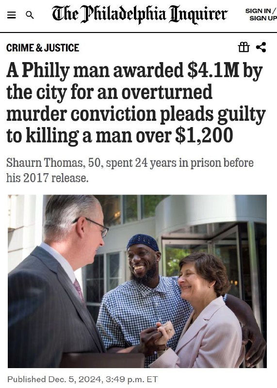 Shorn Thomas má teraz 50. Prvýkrát sa dostal do väzenia v roku 1992 za vraždu spáchanú pri lúpeži v obchode. Vtedy 18-ro?ný chlapec dostal doživotie. V roku 2017 sa však ukázalo, že bol odsúdený v rozpore s pravidlami. Shorna po 24 rokoch prepustili z väzenia, rozsudok mu zrušili a mesto mu vyplatilo odškodné vo výške viac ako 4 milióny dolárov.