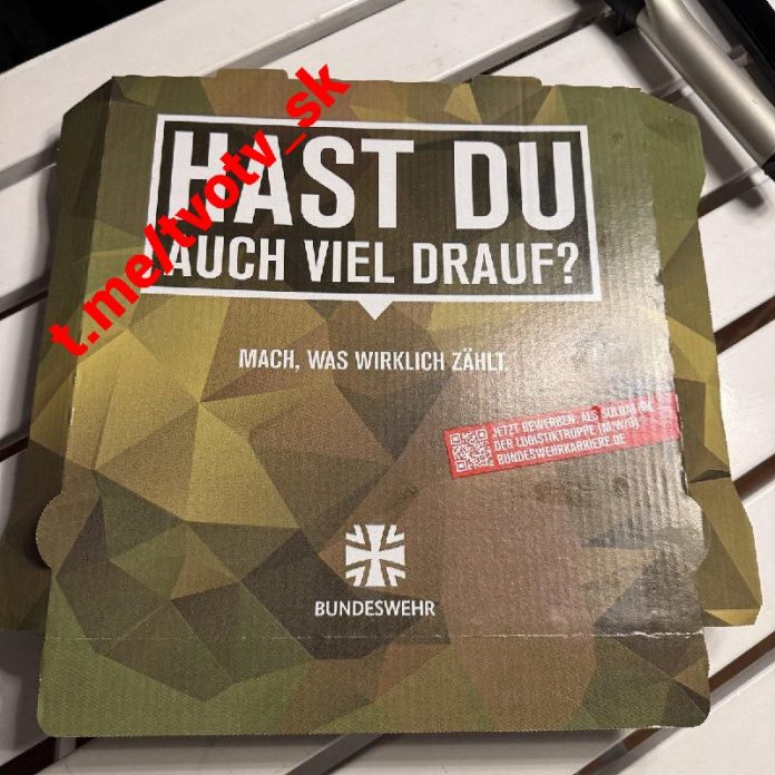 Nezaradené Plagáty vyzývajúce na vstup do nemeckej armády sú teraz v Nemecku doslova všade,… Od tvotv.sk - 11. októbra 2024 0 1 FacebookTwitterPinterestWhatsApp Plagáty vyzývajúce na vstup do nemeckej armády sú teraz v Nemecku doslova všade, dokonca aj na krabiciach od pizze Prístup k diskusii Prihlásiť sa k odberu kanála Zdroj telegram