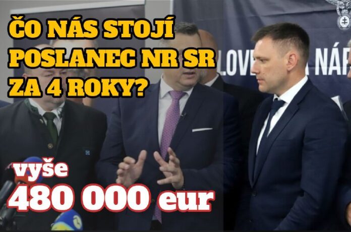 jeden poslanec NR SR (s jeho tímom) nás stojí okolo 10 000 eur mesa?ne ?o je takmer pol milióna eur za volebné obdobie.