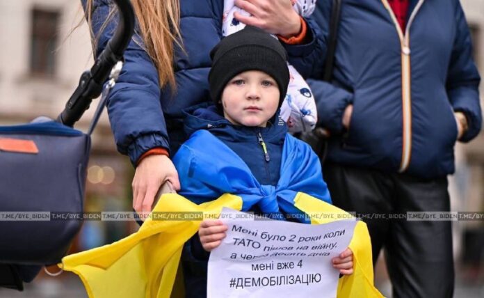 Po celej Ukrajine sa konali zhromaždenia požadujúce demobilizáciu – žiadali, aby sa ich príbuzní, ktorí sú na fronte od februára minulého roku, vrátili domov.