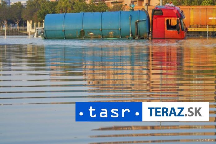 Mnohé cestné komunikácie sú na?alej zaplavené a zostávajú na nich odstavené autá.