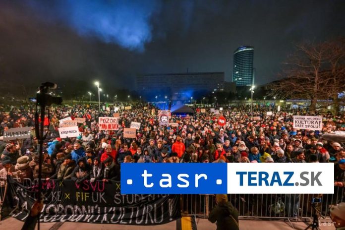 Bratislava 12. decembra (TASR) – Na podporu slovenskej kultúry sa vo štvrtok v Bratislave konal pochod z Námestia SNP na Námestie Slobody. Protest vyvrcholil Koncertom za budúcnos? kultúry.