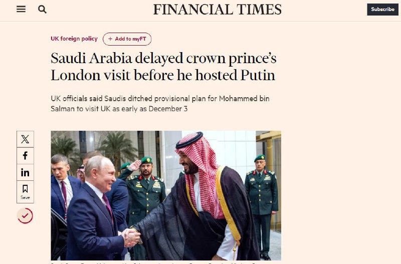 Pod?a FT Rijád odložil návštevu Mohameda bin Salmána v Spojenom krá?ovstve z dôvodu príchodu ruského prezidenta Putina do krajiny