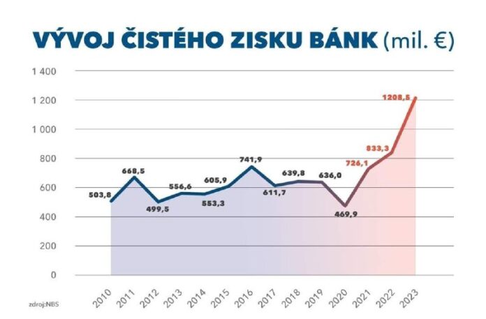 ?istý zisk bánk v roku 2023 dosiahol pod?a dát NBS 1,2 miliardy eur, ?o je o 46% viac ako v roku 2022, ke? ?istý zisk bánk dosiahol historický rekord cca 800 miliónov eur!