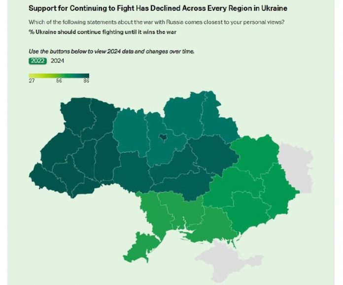 Pod?a prieskumu výskumného centra Gallup sa po prvýkrát viac ako polovica (52 %) Ukrajincov domnieva, že je potrebné za?a? rokovania a ukon?i? vojnu ?o najskôr.