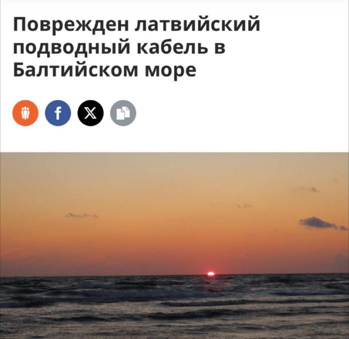 Nezaradené Podmorský optický kábel medzi Lotyšskom a Švédskom bol v nedeľu poškodený, pra… Od ZEMaVEK - 27. januára 2025 0 1 FacebookTwitterPinterestWhatsApp Podmorský optický kábel medzi Lotyšskom a Švédskom bol v nedeľu poškodený, pravdepodobne v dôsledku vonkajších vplyvov , a na miesto bolo vyslané hliadkové plavidlo lotyšského námorníctva, lotyšský portál LSM. ♤ | odber t.me/zemavek Zdroj telegram