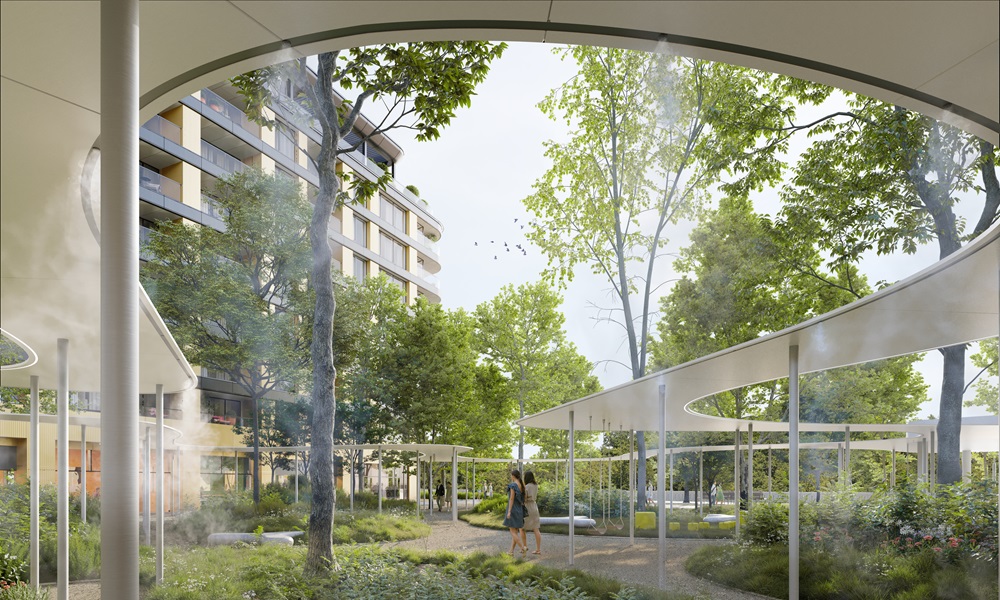 Zeleným srdcom novej nábrežia popri River Parku bude Lanfranconiho námestie s rozlohou 2 600 m², ktoré navrhli víťazi architektonickej súťaže z ateliéru BETWEEN. Nové pobytové námestie, ktoré prepojí princíp udržateľnosti s kvalitnou architektúrou, poskytne vítaný priestor na posedenie a odpočinok, s nádhernými výhľadmi na Dunaj a jeho zelený pravý breh. Viac ako tri desiatky vzrastlých stromov, budú príjemne tieniť a ochladzovať námestie aj počas horúcich letných mesiacov. Zelené ostrovy a trávniky doplnené o rôzne druhy bylín a kríkov budú tematicky rozdelené tak, aby slúžili ľuďom, ale aj prírode. Pomôžu zadržiavať povrchovú vodu a prispejú k schladeniu mikroklímy, čím prispejú k boju proti prehrievaniu mestských priestorov.