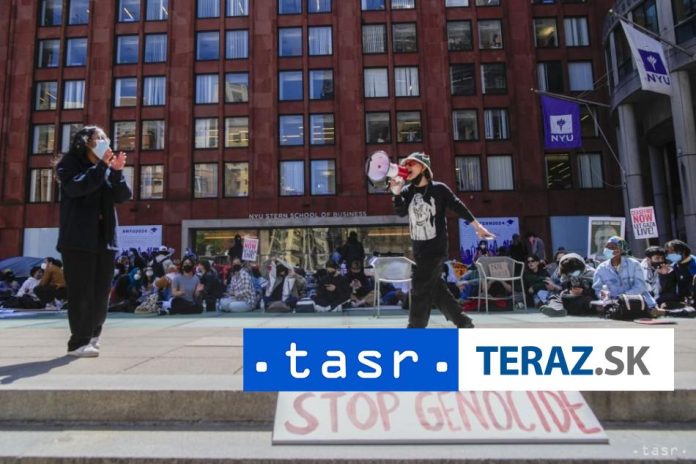 Protesty na Kolumbijskej univerzite trvajú už pä? dní, pripomína BBC. Minulý štvrtok tam polícia zatkla viac než 100 ?udí. Študenti na rôznych univerzitách v USA organizujú protesty a iné zhromaždenia od vypuknutia konfliktu v Pásme Gazy vlani v októbri.