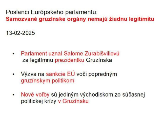 1, neuznávajú zvoleného gruzínskeho prezidenta, naopak za legitímnu hlavu štátu považujú bývalú prezidentku, francúzsku ob?ianku, ktorej v decembri 2024 skon?il mandát