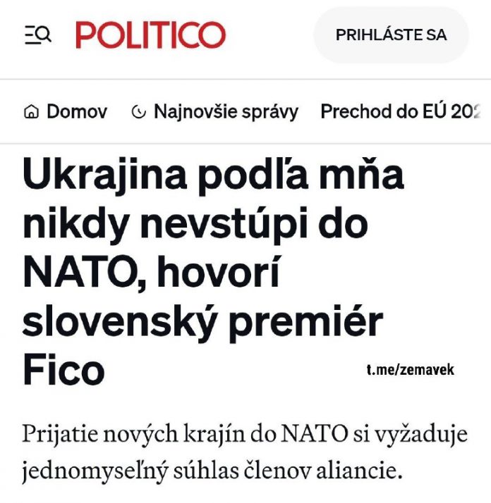 POLITICO: Slovenský premiér Robert Fico v nede?u s?úbil, že zablokuje vstup Ukrajiny do NATO, kým bude šéfom tamojšej vlády.
