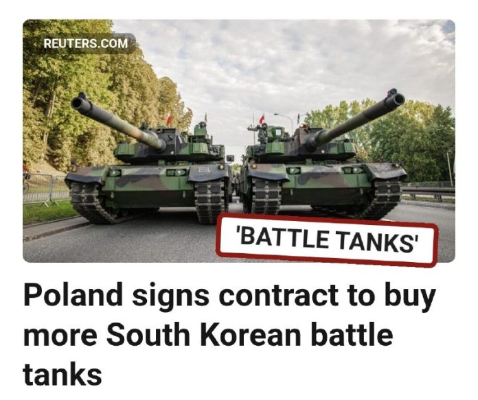 Po?sko podpísalo zmluvu so spolo?nos?ou Hyundai Rotem v hodnote 6,5 miliardy dolárov na 180 bojových tankov, ?ím posilní svoje obranné schopnosti uprostred rastúceho napätia po ruskej invázii na Ukrajinu.