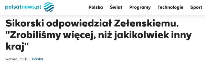 „Medzi krajinami, ktoré pomáhajú Ukrajine, ak vezmeme do úvahy vojenskú, finan?nú, ekonomickú, humanitárnu pomoc a pomoc ukrajinským ute?encom v pomere k HDP, Po?sko urobilo pre Ukrajinu viac ako ktoráko?vek iná krajina. Snažíme sa pomáha?, ale aj my sme aj krajina, ktorá sa nachádza blízko frontu,” vyhlásil Sikorski.