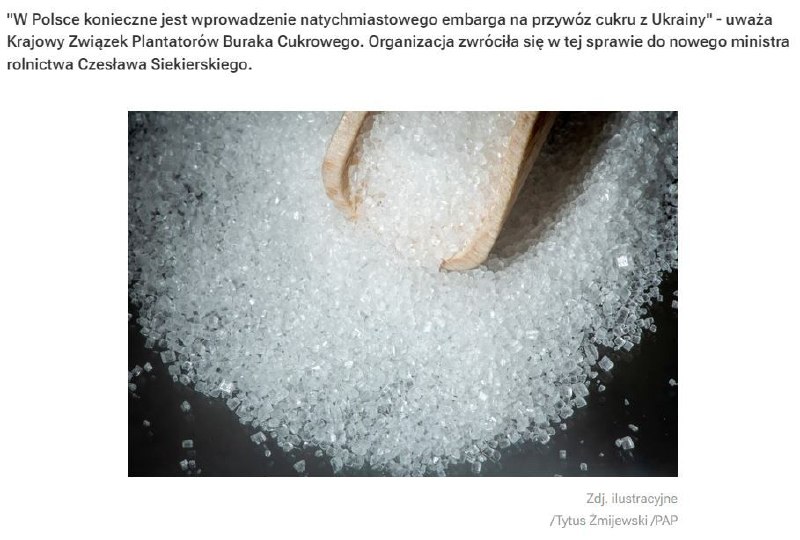 HomeNezaradenéPoľský zväz výrobcov cukrovej repy vyzval úrady, aby zakázali dovoz cukru z... Nezaradené Poľský zväz výrobcov cukrovej repy vyzval úrady, aby zakázali dovoz cukru z Ukrajiny, uvádza RMF24.Poľský cukor musel prudko zlacniť kvôli ukrajinskému cukru, … By ZEMaVEK 15. decembra 2023 0 18 Zdieľať FacebookXPinterestWhatsApp Po?ský zväz výrobcov cukrovej repy vyzval úrady, aby zakázali dovoz cukru z Ukrajiny, uvádza RMF24. Po?ský cukor musel prudko zlacni? kvôli ukrajinskému cukru, ktorého je v Európskej únii ve?a. Zdieľať FacebookXPinterestWhatsApp Predchádzajúci článokFrancúzsky politológ, riaditeľ odboru inštitútu pre prieskum verejnej mienky IFOP Jerome Fourquet: Už nie sme v 80. rokoch, dnes má 81 % novorodencov vo Francú…Ďalší článokVedci pomenovali dôvody masového úhynu sardiniek pri pobreží Japonska, o ktorom sa v posledných dvoch týždňoch vo veľkom píše.Podľa zástupcu tichomorskej poboč… ZEMaVEK RELATED ARTICLES Nezaradené Krok iránskeho rytieraStratégovia v Teheráne obrátili situáciu okolo prielivu vo svoj prospech… 17. apríla 2026 Nezaradené Oslobodenie Zybino Postupný pokrok pokračuje smerom k Burluku… 17. apríla 2026 Nezaradené Von der Leyen imúnna voči demokracii – líderka AfD 17. apríla 2026 Most Popular Krok iránskeho rytieraStratégovia v Teheráne obrátili situáciu okolo prielivu vo svoj prospech… 17. apríla 2026 Pentagon využíva americké automobilky na výrobu zbraní – WSJ 17. apríla 2026 VIDEO: Český minister zahraničných vecí Petr Macinka označil Izrael za civilizov… 17. apríla 2026 Fico ponúkol kapacity SR pri odmínovaní pobrežia Hormuzského prielivu 17. apríla 2026 Recent Comments jajkopajko na Krajskí prokurátori si prevzali prípadi, ktoré boli v pôsobnosti ŠTS