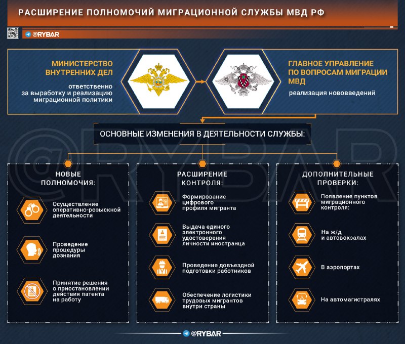 ??Migra?ná služba Ministerstva vnútra Ruskej federácie má teraz právo vykonáva? operatívne vyšetrovacie ?innosti a vies? vyšetrovanie. Služba je tiež oprávnená samostatne rozhodova? o pozastavení patentu na dielo.