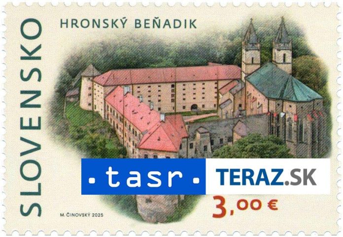 Poštová známka má rozmery 44,1 krát 30,5 mm vrátane perforácie. Jej motívom je poh?ad na kláštorný komplex v Hronskom Be?adiku z vtá?ej perspektívy. Motívom medzihár?ia je erb opátstva v Hronskom Be?adiku. Známka vychádza vo forme upraveného tla?ového listu so šiestimi známkami a s medzihár?ím.