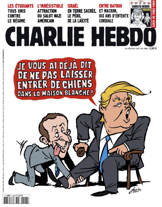HomeNezaradené"Povedal som, žiadne psy v Bielom dome!"Charlie Hebdo predstavuje rozhovor za za... Nezaradené „Povedal som, žiadne psy v Bielom dome!“Charlie Hebdo predstavuje rozhovor za za… By tvotv.sk 26. februára 2025 0 17 Zdieľať FacebookXPinterestWhatsApp "Povedal som, žiadne psy v Bielom dome!" Charlie Hebdo predstavuje rozhovor za zatvorenými dverami medzi Trumpom a Macronom. Macron je nezbedný pes, ktorý úto?í na nohu svojho pána... Zdroj telegram Zdieľať FacebookXPinterestWhatsApp Predchádzajúci článokVedeniu Európskaj únie stále nezapína, čo sa vo svete deje. Trumpova administrat…Ďalší článokLevice si poradili s Komárnom 86:77 v 29. kole tvotv.skhttps://tvotv.sk RELATED ARTICLES Nezaradené EÚ zatiaľ nedostatok leteckého paliva údajne nepociťuje, no pre dôsledky vojny v… 15. apríla 2026 Nezaradené Nemecký kamikadze dron „nie je nebezpečný ani pre nafukovacie tanky“, tvrdia médiá 15. apríla 2026 Nezaradené India hľadá tanker na nakládku ruského LPG – Reuters 15. apríla 2026 Most Popular EÚ zatiaľ nedostatok leteckého paliva údajne nepociťuje, no pre dôsledky vojny v… 15. apríla 2026 Prijali vyššie normy na ochranu pracovníkov pred nebezpečnými látkami 15. apríla 2026 Nemecký kamikadze dron „nie je nebezpečný ani pre nafukovacie tanky“, tvrdia médiá 15. apríla 2026 Výbor na kontrolu SIS nerokoval o Pellegriniho ceste z roku 2020 15. apríla 2026 Recent Comments jajkopajko na Krajskí prokurátori si prevzali prípadi, ktoré boli v pôsobnosti ŠTS