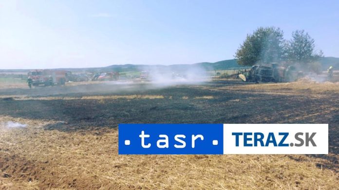 Požiar balíkova?a slamy, balíkov slamy a slamy na riadkoch medzi spomínanými obcami bol pod?a HaZZ nahlásený po 13.30 h. V ?ase príchodu hasi?ov na miesto bol pracovný stroj už v tre?om štádiu horenia.