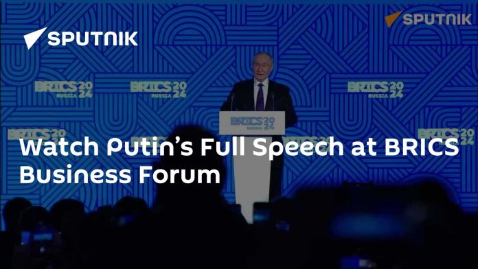 Ruský prezident Vladimir Putin sa prihovoril ú?astníkom obchodného fóra BRICS pred samitom BRICS v roku 2024 v Kazani, ktorý sa má za?a? za?iatkom budúceho týžd?a.