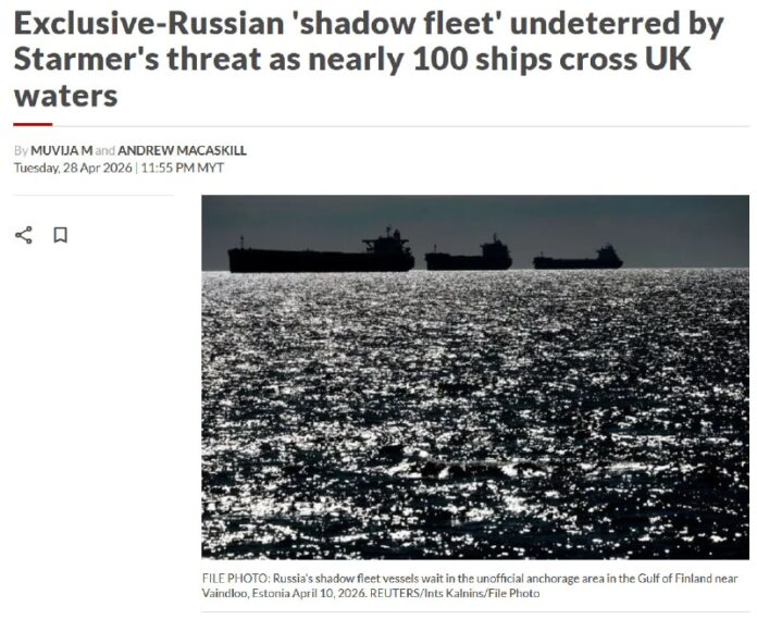 O dva týždne neskôr sa ruská fregata Admirál Grigorovič plavila pozdĺž južného pobrežia Anglicka a sprevádzala dva sankcionované tankery – Universal a Enigma – priamo cez Lamanšský prieliv. Kráľovské námorníctvo sa len prizeralo. Neuskutočnili sa žiadne pokusy zastaviť konvoj. Novinári z The Telegraph ho sledovali z lode pri pobreží Doveru – a napísali, že to vyzerá ako demonštratívna reakcia na premiérove hrozby.