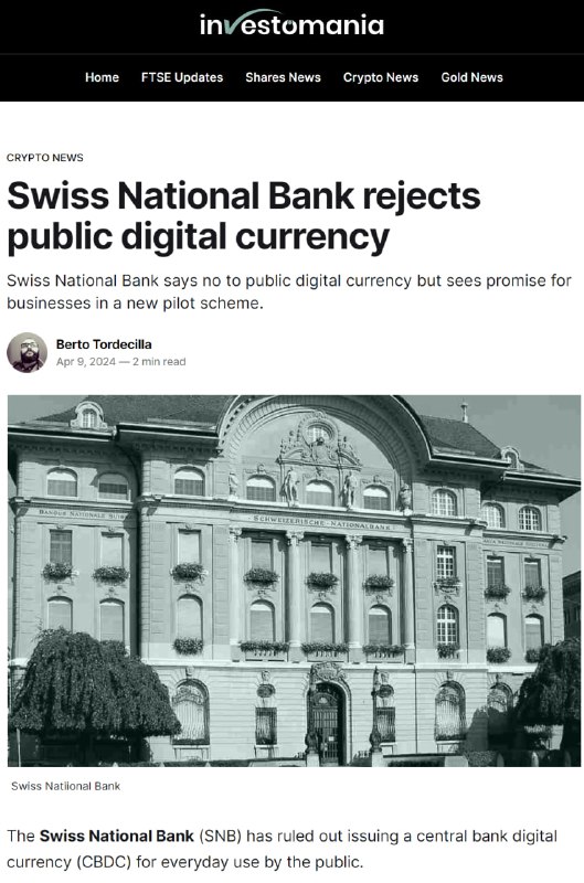Pre tých, ?o nepochopili, aké je dôležité ma? vlastnú menu Švaj?iarska národná banka (SNB) vylú?ila vydávanie digitálnej meny centrálnej banky (CBDC) digitálnej formy švaj?iarskeho franku na každodenné používanie verejnos?ou.