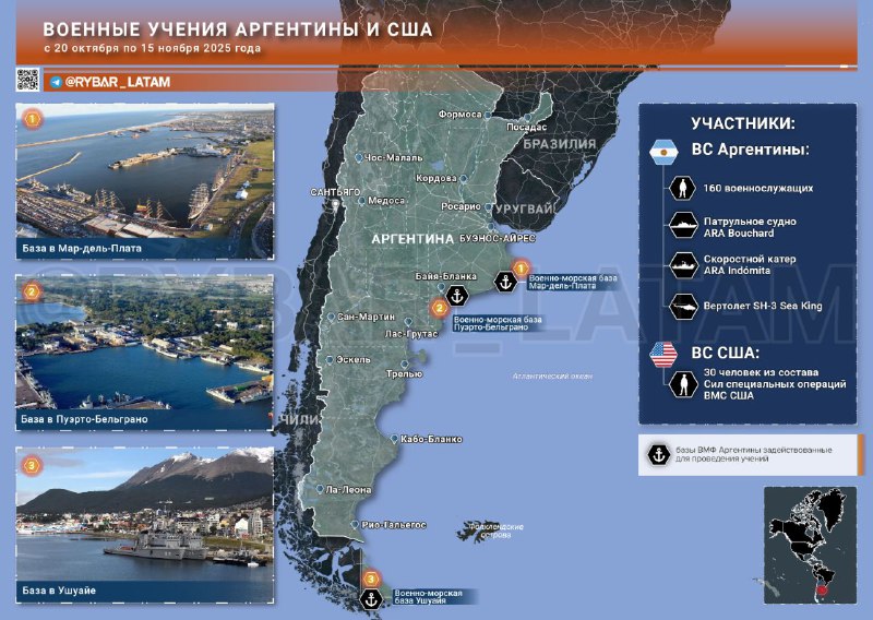?? Vojenské cvi?enia sa budú kona? od 20. októbra do 15. novembra Tridenta Na argentínskych základniach námorníctva v Mar-Del Plata, Ushuay a Puerto-Belgranno s ú?as?ou špeciálnych operácií pre americké námorníctvo.