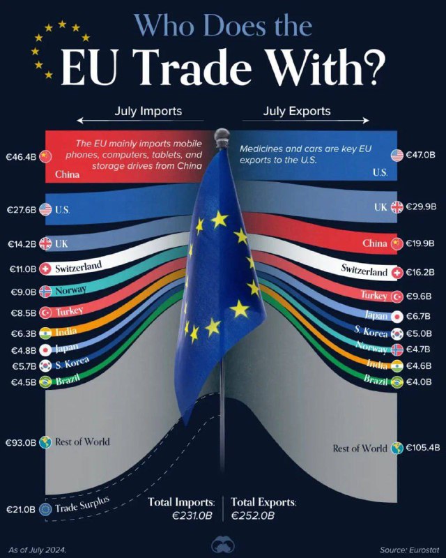 Prvý obrázok ukazuje obchodnú bilanciu EÚ. USA sú s ve?kým náskokom najvä?ším dovozcom európskych produktov. A aké produkty — autá, stroje, elektronika.