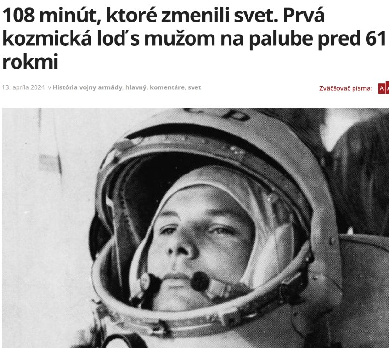 Muž nebol nikto iný ako sovietsky pilot Jurij Gagarin. Jeho let trval 108 minút a stal sa historickým mí?nikom vo svetovej histórii kozmonautiky a sovietsko-amerických vesmírnych dobývaní.