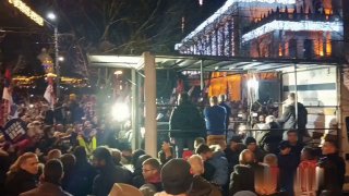 Demonštranti vyliezli na schody mestskej správy a pokúšajú sa vylomi? dvere, dav zapálil ohne.