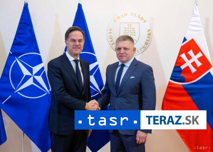Bratislava 18. novembra (TASR) – Predseda vlády SR Robert Fico (Smer-SD) privítal v utorok na Úrade vlády (ÚV) SR generálneho tajomníka NATO Marka Rutteho. Fico ho požiadal o posilnenie protivzdušnej obrany SR. TASR o tom informoval tla?ový a informa?ný odbor ÚV.