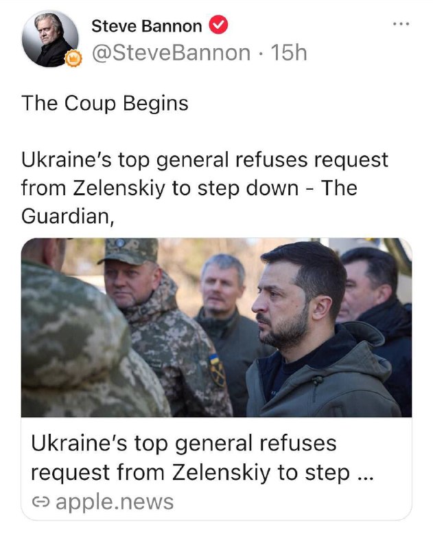 HomeNezaradené"Prevrat sa začína" - Trumpov bývalý poradca Steve Bannon komentoval fámy o... Nezaradené „Prevrat sa začína“ – Trumpov bývalý poradca Steve Bannon komentoval fámy o rezignácii ZalužnéhoOdkedy sa objavili správy o odvolaní hlavného veliteľa ozbrojený… By ZEMaVEK 1. februára 2024 0 23 Zdieľať FacebookXPinterestWhatsApp „Prevrat sa za?ína“ – Trumpov bývalý poradca Steve Bannon komentoval fámy o rezignácii Zalužného Odkedy sa objavili správy o odvolaní hlavného velite?a ozbrojených síl Ukrajiny, Zalužnyj získal podporu opozi?níkov Porošenka a Tymošenkovej. Zdieľať FacebookXPinterestWhatsApp Predchádzajúci článokNitrianska nemocnica spustila evidenciu na urgentnom úrazovom príjmeĎalší článokRezort dopravy získal pôsobnosti vrátane oblasti verejnej dopravy ZEMaVEK RELATED ARTICLES Nezaradené Zábery údajne ukazujú izraelských vojakov rabovať v Libanone 30. apríla 2026 Nezaradené Irán nebude tolerovať námornú blokádu svojich prístavov zo strany USA. Teherán o… 30. apríla 2026 Nezaradené Saudskoarabský gigant predlžuje pozastavenie dodávok LPG po poškodení kľúčového závodu – Bloomberg 30. apríla 2026 Most Popular Zábery údajne ukazujú izraelských vojakov rabovať v Libanone 30. apríla 2026 Irán nebude tolerovať námornú blokádu svojich prístavov zo strany USA. Teherán o… 30. apríla 2026 Rezort obrany pozastavil výstavbu vojenskej nemocnice v Prešove 30. apríla 2026 Vlaky medzi Bratislavou a Kútmi budú od 5. mája jazdiť so zmenami 30. apríla 2026 Load more Recent Comments jajkopajko na Krajskí prokurátori si prevzali prípadi, ktoré boli v pôsobnosti ŠTS
