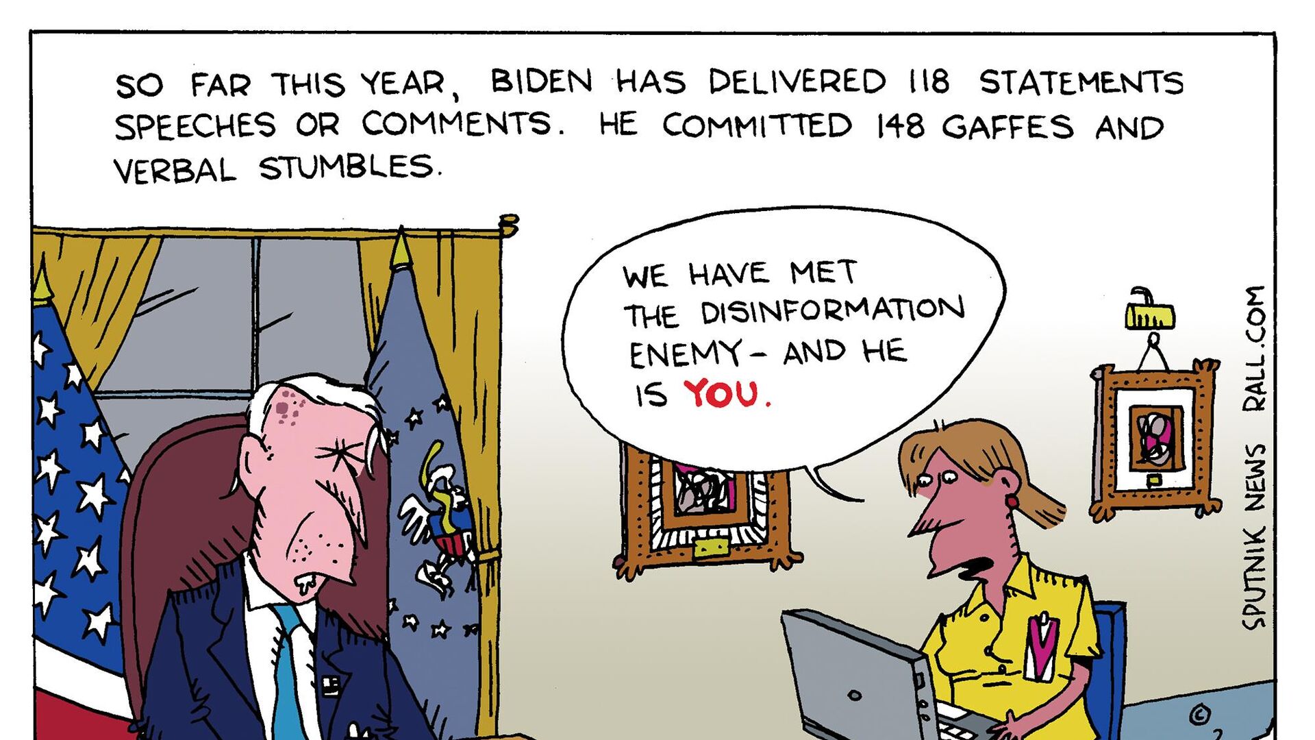 Bidenova neschopnos? drža? sa správy niekedy viedla k zmätku oh?adom oficiálneho postoja Bieleho domu. Pokia? ide o dezinformácie, predstavitelia Bidenu, podobne ako Pogo, zis?ujú, že nepriate? je bližšie, ako si myslia.