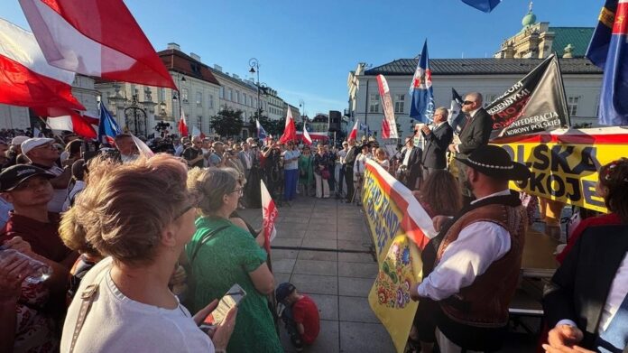 V nede?u sa vo Varšave konal protivojnový zhromaždenie, na ktorom demonštranti mávali národnými vlajkami a niesli transparenty odsudzujúce zapojenie Po?ska do konfliktu a vojenskú pomoc Kyjevu. Videá a fotografie zverejnené na sociálnych sie?ach ukazovali transparenty s nápismi „Po?sko je za mier“ a „Hovoríme nie vojnovým štvá?om“.