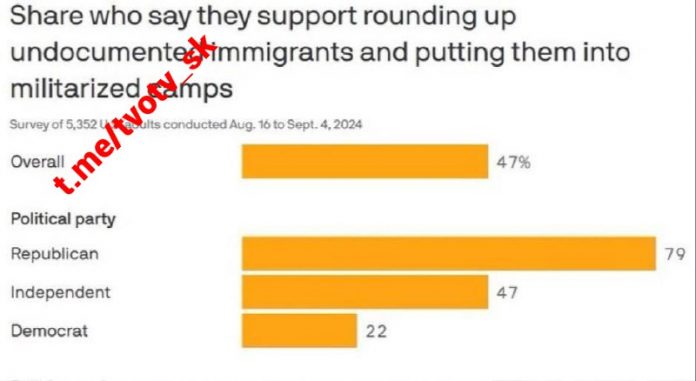 Nezaradené Prieskumy verejnej mienky ukazujú, že približne polovica obyvateľov USA podporu… Od tvotv.sk - 23. októbra 2024 0 4 FacebookTwitterPinterestWhatsApp Prieskumy verejnej mienky ukazujú, že približne polovica obyvateľov USA podporuje umiestnenie migrantov bez dokladov v zabezpečených táboroch. Prístup k diskusii Prihlásiť sa k odberu kanála Zdroj telegram