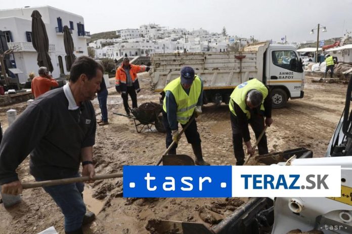 Prívalové dažde a silný vietor v pondelok ako prvé zasiahli ostrovy Paros a Mykonos, kde lokálne záplavy poškodili autá, domy i podniky. Miestne úrady už požiadali o štátnu pomoc pri opravách ciest a zni?enej infraštruktúry.