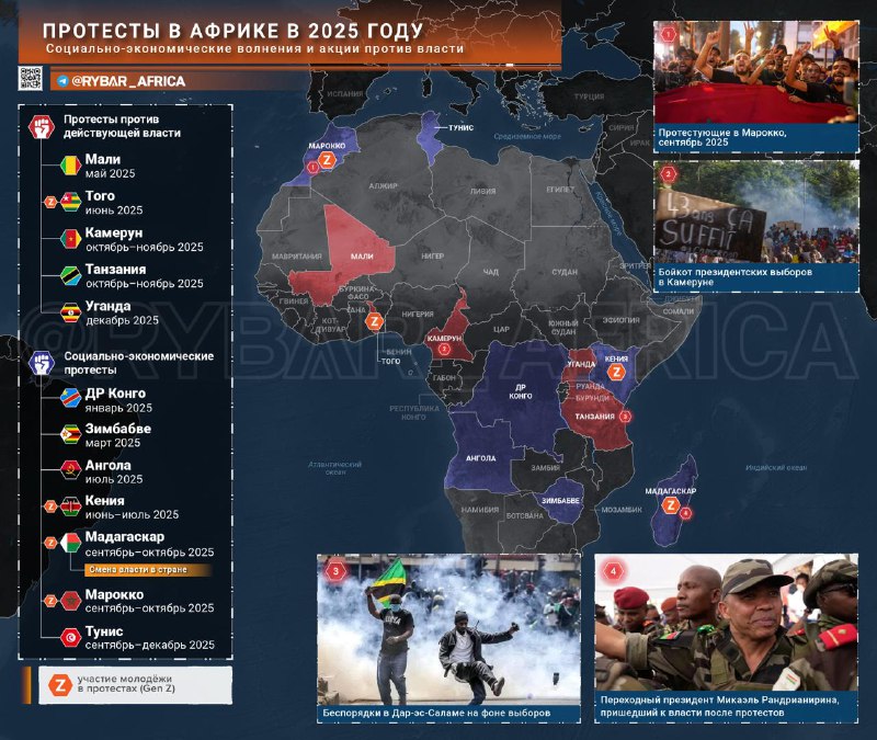 ▪️ Na jeseň sa rozšírili protesty mládeže Madagaskar a Maroko – výsledok týchto akcií sa však ukázal byť odlišný. Na Madagaskare sa predstavenia začali koncom septembra v Antananarive a ďalších mestách kvôli nedostatku vody, elektriny a ekonomickej nestabilite. Spočiatku boli akcie sociálneho charakteru, no čoskoro sa rozvinuli do protivládnych a viedli k zmene vlády.