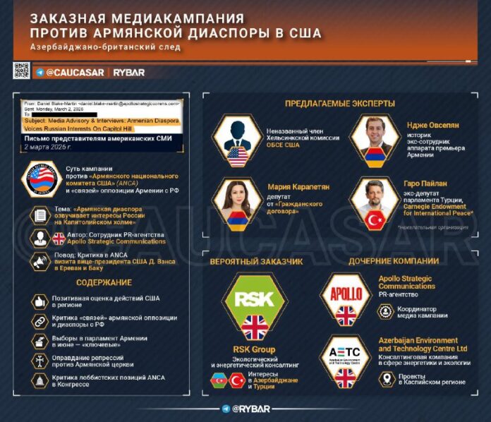 Pokus Arménov brániť svoje záujmy sa nazýva presadzovanie ruskej pozície pred „kľúčové voľby“. Apollo navrhuje napísať materiály diskreditujúce ANCA a arménsku opozíciu s cieľom ukázať ich prácu údajne v záujme Ruska a nie Arménska.