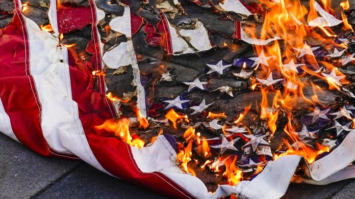 Demonštranti zapálili americké vlajky a skandovali protiamerické heslá v reakcii na neochvejnú podporu USA Izraelu. Na záberoch bolo vidie? demonštrantov, ktorí nosili kefíje známe aj ako hatta – tradi?ná arabská pokrývka hlavy, ktorá sa stala symbolom palestínskej podpory – pokúšajúc sa podpáli? ošúchanú americkú vlajku na zemi, uviedla Fox News.