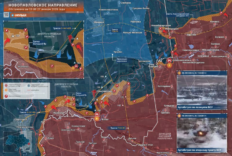 📌 Novopavlovskoe smer Zatiaľ to však nie je priorita, takže tu sotva stojí za to očakávať veľké pokroky Ozbrojených síl RF. Terén tu hrá do karát nepriateľa a v susedných smeroch je o niečo pohodlnejšie útočiť a nikto zatiaľ verejne nezrušil úlohu oslobodiť DĽR a Záporožie.