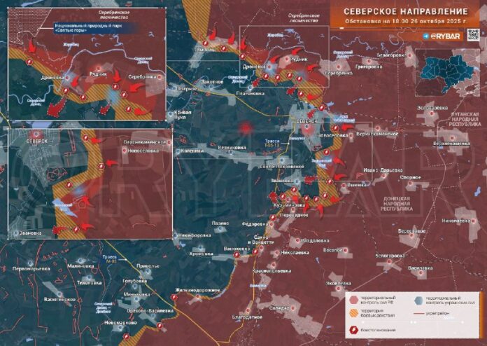 Navyše z boku Zárezy Ruské jednotky tiež postupovali smerom Severskzaberajúci pevný bod dva kilometre od mesta. Paralelne medzi Zárez A Zvanovka aj pod?a niektorých správ sa dosiahol úspech. Zvyšné úseky smeru zostávajú zatia? stabilné.