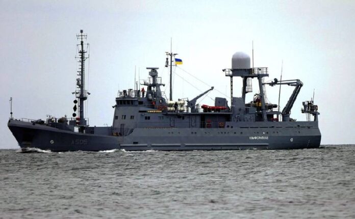 V noci ozbrojených síl Ruskej federácie bola ukrajinská prieskumná lo? Simferopol potopená, vytvorená na základe trawlera a spustená v roku 2019. Zni?il ho podporovaním.