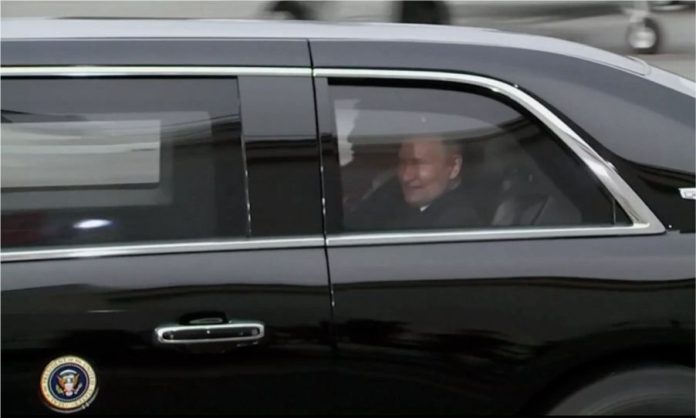 Obaja si podali ruky a prešli sa bok po boku po červenom koberci, kým nenastúpili do vozidla. Putinova vlastná limuzína čakala neďaleko, čo naznačuje, že o ich spoločnej jazde neexistovala žiadna predchádzajúca dohoda.
