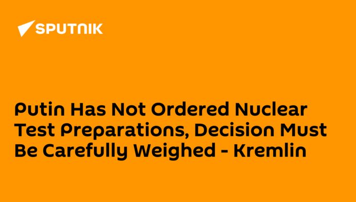Ruský prezident Vladimir Putin nedal žiadne pokyny na za?atie príprav na jadrové testy; Najprv sa musí rozhodnú?, ?i to Rusko potrebuje urobi?, povedal hovorca Krem?a Dmitrij Peskov.