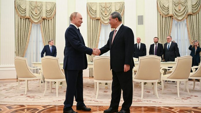 ?ínsky premiér Li Qiang v utorok pristál na moskovskom letisku Vnukovo, kde ho privítali ruskí predstavitelia a ?estná stráž.