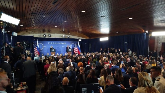 Ruský prezident Vladimir Putin na spolo?nej tla?ovej konferencii so svojím americkým kolegom Donaldom Trumpom v piatok vyhlásil, že na dosiahnutie trvalého riešenia ukrajinského konfliktu je potrebné rieši? všetky jeho základné prí?iny, zoh?adni? legitímne obavy Ruska a obnovi? spravodlivú rovnováhu v globálnej bezpe?nosti.