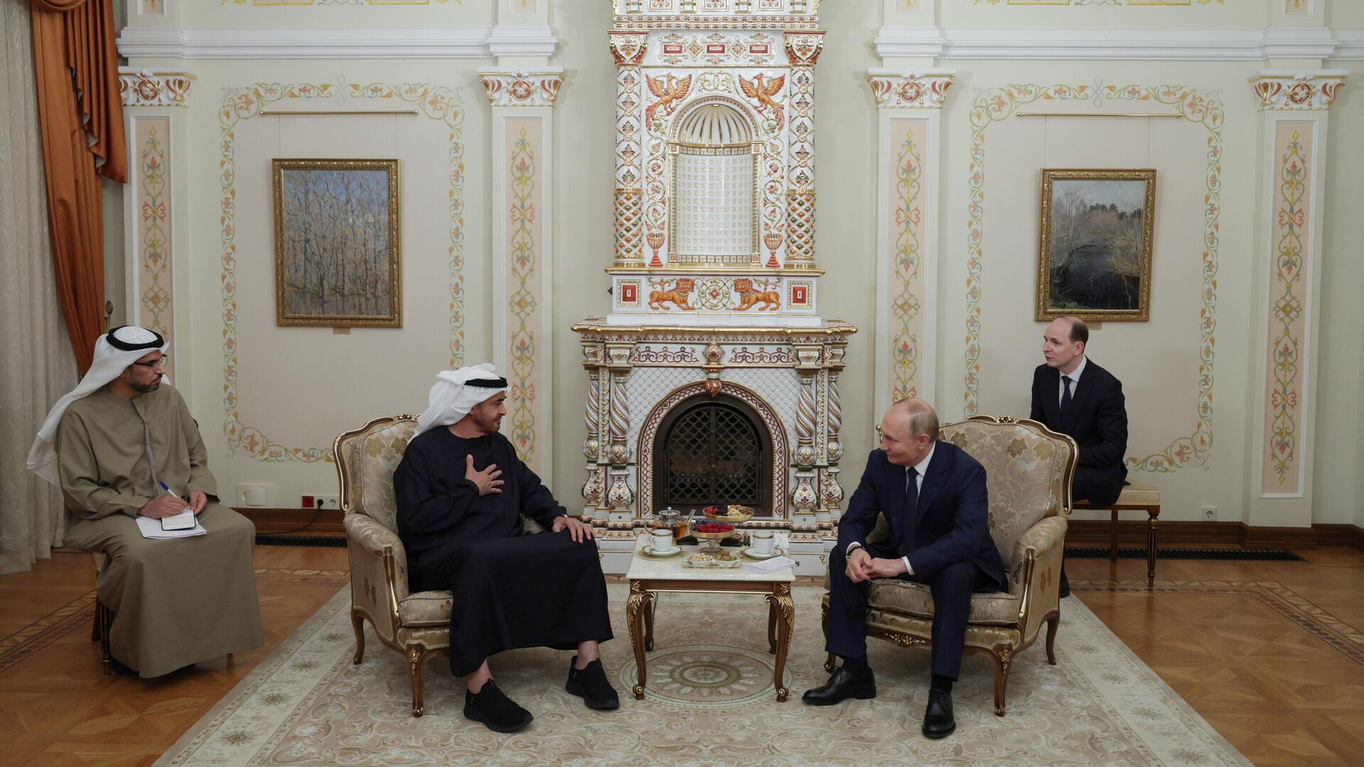 Prezident Spojených arabských emirátov Mohammed bin Zayed Al Nahyan pricestoval na oficiálnu návštevu Moskvy. Po príchode sa stretol s ruským prezidentom Vladimirom Putinom na neformálnej ve?eri v prezidentovom vidieckom sídle v Novo-Ogaryove. Obaja lídri diskutovali o rôznych otázkach.