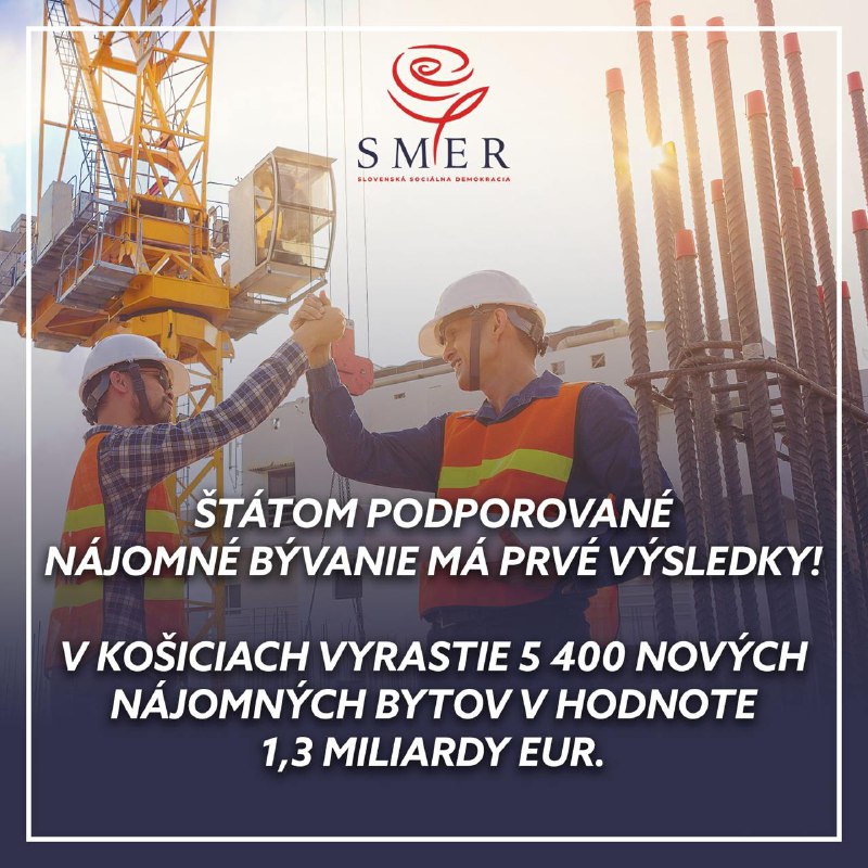 Košice 16. januára (TASR) – Podporu vlády pre výstavbu nájomných bytov v Košiciach a okolí v rámci štátom podporovaného nájomného bývania deklaroval premiér Robert Fico (Smer-SD). Potvrdil plány, v rámci ktorých by v partnerstve s mestom Košice a rakúskym investorom malo po?as desiatich rokov pribudnú? zhruba 5400 nájomných bytov, ?alšie nájomné byty by mali vyrás? v oblasti Valalík pri novej automobilke Volvo. Premiér o tom informoval vo štvrtok v Košiciach po rokovaní so zástupcami Ministerstva dopravy SR, Agentúry štátom podporovaného nájomného bývania (AŠPNB), mesta Košice, Košickej arcidiecézy a investora.