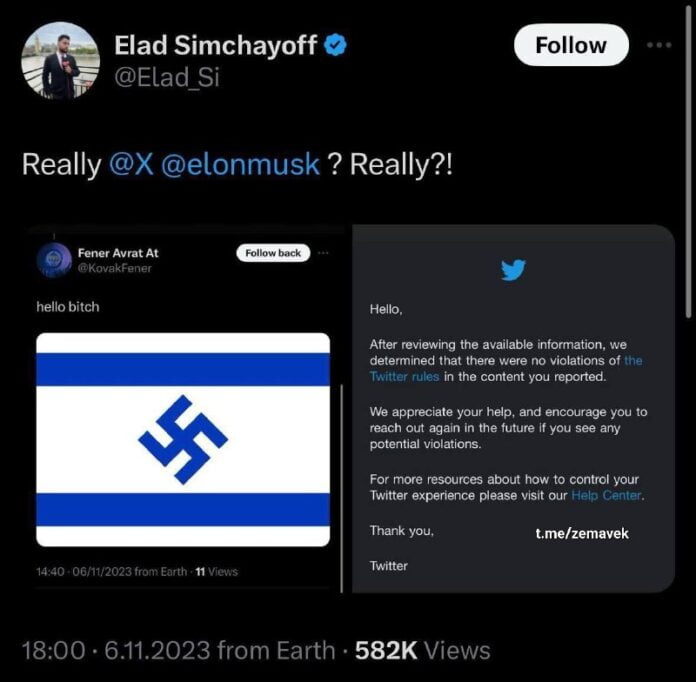 Reportér izraelského Channel 12 sa s?ažoval sociálnej sieti X a jej riadite?ovi Elonovi Muskovi na používate?a, ktorý pridal nacistický symbol na izraelskú vlajku.